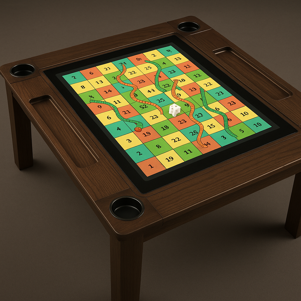 Ta spillkvelden til et nytt nivå med et premium spillebord som kombinerer klassisk borddesign med en fullintegrert 65-tommers TV-skjerm i bordplaten. Ideelt for Dungeons & Dragons, strategispill, digitale kart, brettspill, videospill – eller som et imponerende multimediabord til hjemmekino og streaming.
